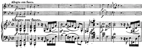 ![]() Strona jedenasta autografu Tria g-moll (fragment cz. 1. Allegro con fuoco) | |||