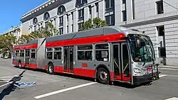 Trolejbus New Flyer XT60 na linii 5 na Temporary Transbay Terminal | |