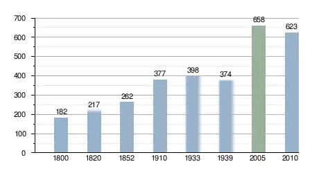 Liczba ludności w ostatnich 3 wiekach (wieś i majątek)[15][16][17][18][19]: