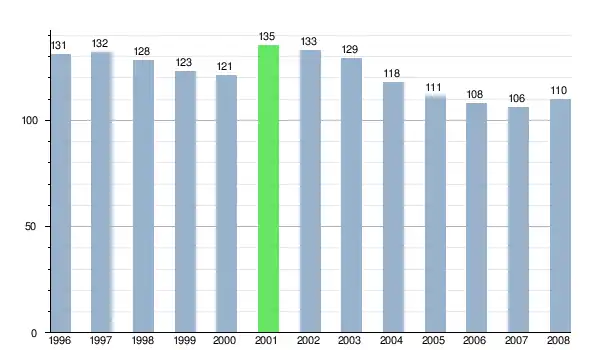 Zmiany liczby ludności w miejscowości Trpín od 1996 roku.