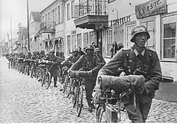 W 1945 roku, w końcowym okresie wojny, aliancka ofensywa na Berlin i inne duże miasta niszczyła sprzęt i zaopatrzenie, co zmusiło Niemców do korzystania z każdej dostępnej im formy transportu. Rowery były masowo używane przez piechotę, Volkssturm i Hitlerjugend do manewrowania ulicami atakowanych miast w daremnej próbie powstrzymania alianckiego natarcia[1].