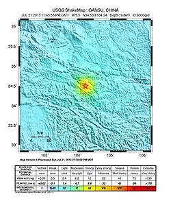 - 1 2 Armand Vervaeck, James Daniell: Deadly earthquake near Minxian, Gansu, China – at least 95 killed and 1001 injured. Earthquake Report, 2013-07-22. [dostęp 2013-07-22]. (ang.).
