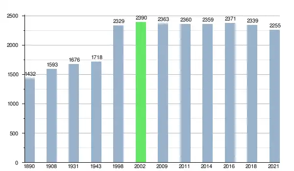 Według danych na koniec 2011 na ogólną liczbę 2360 mieszkańców było 1133 mężczyzn i 1227 kobiet. Na 100 mężczyzn przypadało 108 kobiet.