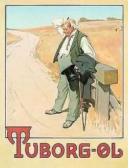 Etykieta niemieckiego Zielonego Tuborga przez wiele lat prezentowała obraz Henningsena pod tytułem „Spragniony człowiek”. Był to początkowo plakat reklamowy Tuborga, który zajął drugie miejsce w konkursie zorganizowanym przez firmę w roku 1900[2]. Plakat ten zdobył ogromną popularność i do dziś bywa wykorzystywany na etykietach, a także w reklamach Tuborga. Opis tej reklamy pojawia się także na kartach powieści "Generation P" Wiktora Pielewina. Główny bohater pijąc Tuborga obmyśla nowe hasło reklamowe na potrzeby rosyjskiego rynku i zachwyca się symbolicznym ładunkiem zawartym w oryginalnym plakacie.