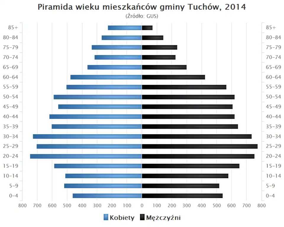 - Piramida wieku mieszkańców gminy Tuchów w 2014 roku[2].