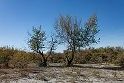 - Tugaj perzowy. Średnio zwarty drzewostan budowany praktycznie tylko przez topolę. W podszycie dominuje tamaryszek. Woda gruntowa na głębokości 3,5–4,5 m.