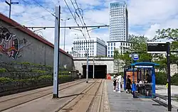 Przystanek ten składa się z części podziemnej i nadziemnej otwartej 22 stycznia 2007, obsługiwanej przez torowisko wzdłuż ul. Pawiej. Nad torami poprowadzona jest galeria służąca jednocześnie za zejście na perony oraz przejście podziemne pod ul. Pawią.