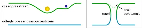 Tunel czasoprzestrzenny łączący regiony tego samego wszechświata to mały obszar czasoprzestrzeni, który łączy odległe fragmenty czasoprzestrzeni. Na grafice przedstawiono to schematycznie.