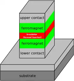 Kierunek magnetyzacji dwóch warstw ferromagnetycznych można indywidualnie przełączać za pomocą zewnętrznego pola magnetycznego. Jeśli magnetyzacje są w orientacji równoległej, bardziej prawdopodobne jest, że elektrony będą przepływać („tunelować”) przez warstwę izolacyjną, niż gdyby były w orientacji przeciwnej (antyrównoległej). W konsekwencji taki układ może być przełączany między dwoma stanami oporności elektrycznej, jednym o niskiej i drugim o bardzo wysokiej rezystancji.