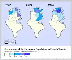 W okresie panowania francuskiego wzrosła liczba Francuzów w Tunezji, od 34 tys. w 1906 roku do 144 tys. w 1945 roku. Francuscy mieszkańcy posiadali również ok. 20% ziemi uprawnej.