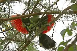Lata słabo, za to zręcznie skacze i wspina się wśród koron drzew i gęstych krzewów.