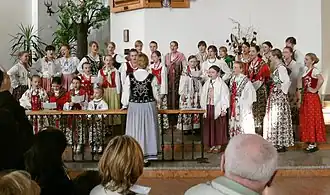 Pierwszy występ 160-osobowego chóru pod dyrekcją Ewy Sterczyńskiej miał miejsce 6 czerwca 1997 podczas mszy świętej na stadionie pod Wielką Krokwią w Zakopanem z udziałem papieża Jana Pawła II. Zaśpiewał wówczas w pieśń "Syćka se Wom zycom"[2] (adaptację wiersza Heleny Bachledy-Księdzularz na melodię podhalańskiej nuty "Pod jaworem"), która od tego czasu często towarzyszyła spotkaniom papieża z Polakami.