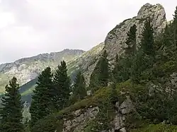 ![]() Turnia nad Kolebą – skalne ściany opadające do Doliny Rówienek | |
