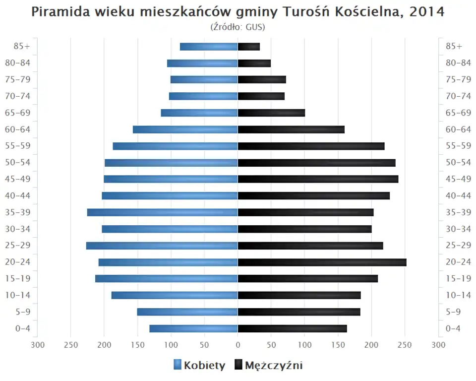 - Piramida wieku mieszkańców gminy Turośń Kościelna w 2014 roku[1].