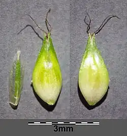 - Orzeszek otoczony pęcherzykiem. Pęcherzyk żółtozielony, z niewyraźnymi nerwami, o długości ok. 3 mm, na szczycie wolno zwężający się w dwuzębny dzióbek.