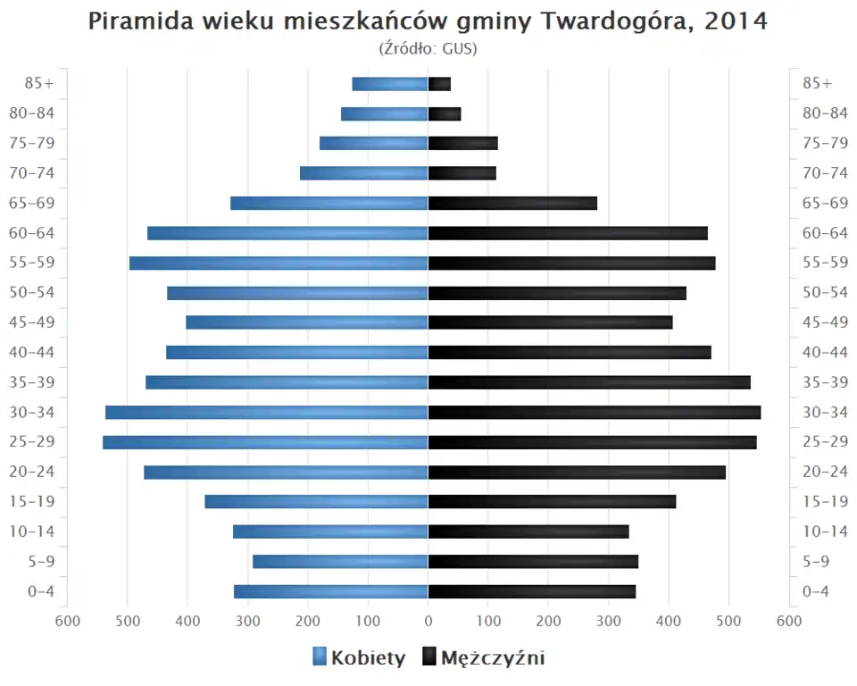 - Piramida wieku mieszkańców gminy Twardogóra w 2014 roku[6].