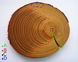 Twardzica występuje często obok krzywizny, mimośrodowości rdzenia i spłaszczenia, najczęściej w odziomkowej części pnia.