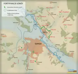 Twierdza Łomża miała stać się jednym z punktów rozległego rejonu wypadowego zawartego między liniami: Modlin-Warszawa-Dęblin; Dęblin-linia Wieprza-Płock- Włodawa i Modlin-Zegrze-Pułtusk-Różan-Ostrołęka-Łomża-Osowiec.