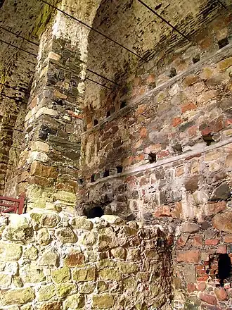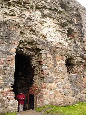 ![]() Widok na zachowane mury oraz basztę fortecy | |