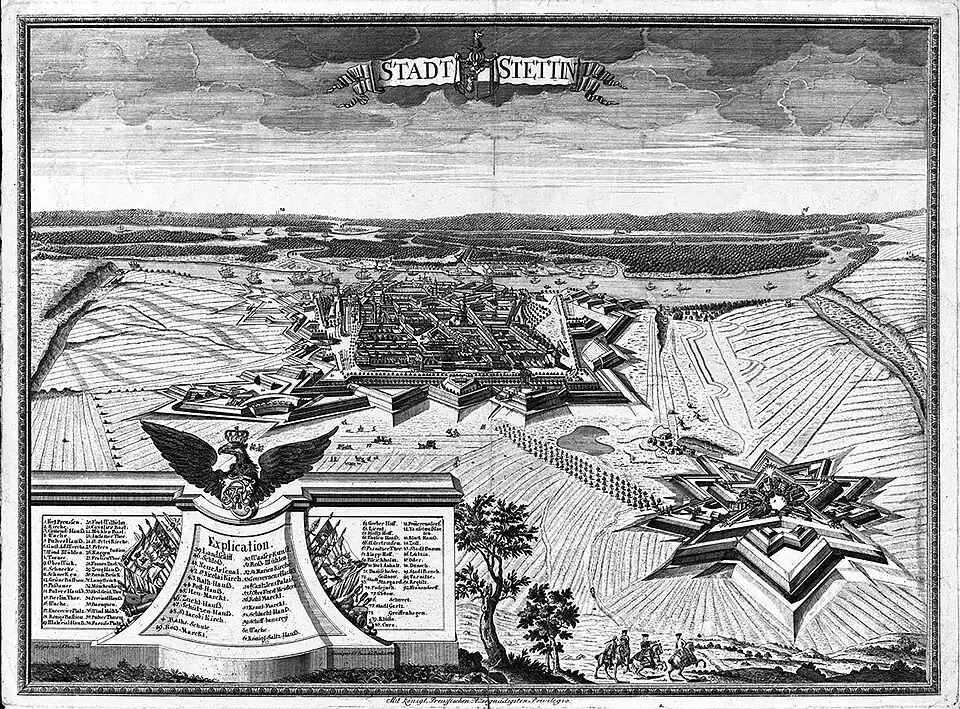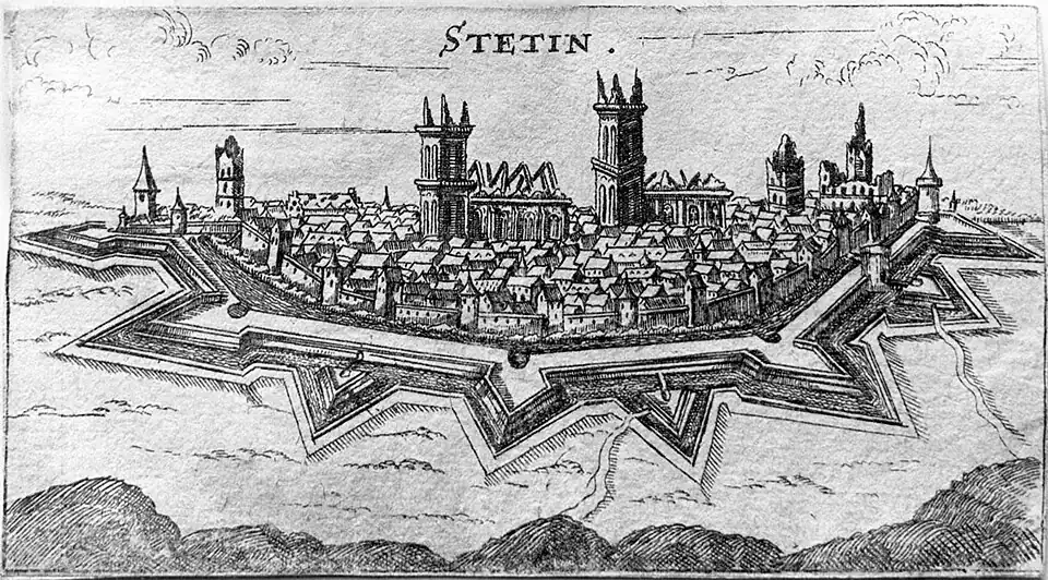 - ↑ Krzysztof Wąs, Szczecin jako twierdza nowożytna – formy, fazy, funkcje, 2013, s. 35 [dostęp 2025-05-20] (pol.).