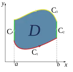 Jeżeli funkcje i są klasy wewnątrz obszaru regularnego krzywa regularna jest brzegiem obszaru i jest zorientowana dodatnio, to[1]: