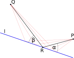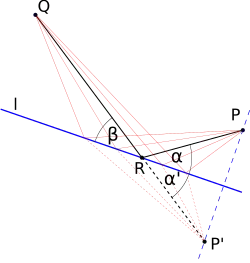 - Łamana jest najkrótsza wtedy i tylko wtedy, gdy kąt padania jest równy kątowi odbicia.