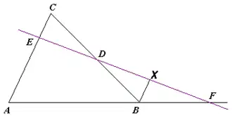 - Jeżeli na bokach i trójkąta dane są punkty i a na przedłużeniu boku punkt tak, że: