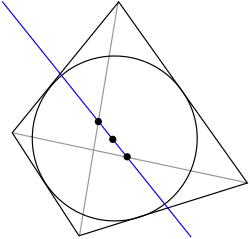W czworokącie opisanym na okręgu środki przekątnych są współliniowe ze środkiem okręgu.
