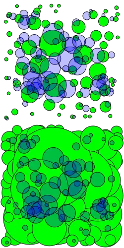 Na dole: podrodzina kul o trzykrotnie większych promieniach pokrywa wszystkie kule.