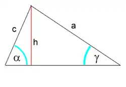 gdzie jest długością wysokości trójkąta opuszczonej na bok b, to dostajemy zależność