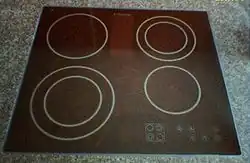 - Szklano-ceramiczne kuchenki używające elektrycznego nagrzewania zwojów bądź lamp halogenowych jako elementów grzewczych. Powierzchnia blatu ponad palnikiem nagrzewa się, lecz jej sąsiedztwo pozostaje chłodne co warunkuje niski współczynnik przewodności cieplnej materiału.