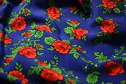 - w stroju śląskim kwadratowe, o rozmiarach ok. 160 x 170 cm, z czarnym lub kremowym tłem, w duże bukiety czerwonych róż i liści w bordiurze, bądź na całej powierzchni, wykończone frędzlami. Produkcji fabrycznej. składane po przekątnej i zarzucane na ramiona, noszone w lecie w niektórych rejonach Śląska[2].