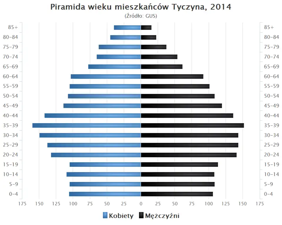 - Piramida wieku mieszkańców Tyczyna w 2014 roku[26].
