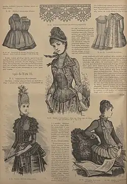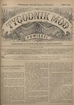 - w 1883 r. na "Tygodnik Mód i powieści z dodatkiem ilustrowanym ubrań i robót kobiecych. Pismo ilustrowane dla kobiet",
