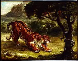 - ↑ National Gallery of Art, Washington D.C: Henri Rousseau: Jungles in Paris. [dostęp 2011-05-10]. [zarchiwizowane z tego adresu (2016-09-02)]. Cytat: His tiger surprising its prey is a ‘must-see’; it’s the alpha and omega of painting and so disconcerting that, before so much competency and childish naïveté, the most deeply rooted convictions are held up and questioned. (ang.).