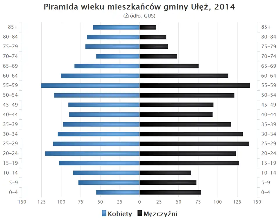 - Piramida wieku mieszkańców gminy Ułęż w 2014 roku[1].