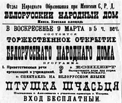 30 października 1919 roku napisany został przez Makara Kaścikiewicza tekst pieśni pt. My wyjdziem szczylnymi radami, do którego Uładzimir Terauski skomponował melodię. Utwór stał się hymnem państwowym Białoruskiej Republiki Ludowej[6].