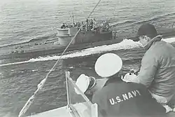 Na spotkanie U-234 został skierowany amerykański niszczyciel eskortowy USS „Sutton”, który spotkał się z niemieckim okrętem 14 maja 1945 roku na południe od Nowej Fundlandii i eskortował go do Portsmouth w New Hampshire. U-234 został obsadzony załogą pryzową, a na pokład niszczyciela przeszło 37 jeńców z niemieckiego okrętu, w tym wszyscy pasażerowie[6]. Oba okręty dotarły do bazy US Navy w Portsmouth 17 maja 1945 roku[7].