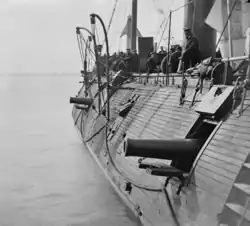 - ↑ Szczegółowy opis pancerza o grubości 3 1/8 cala podaje Canney 1993 ↓, s. 21. W niektórych publikacjach spotykana jest ogólna informacja o grubości pancerza 3,25 cala (Tucker 2006 ↓, s. 36-37, Konstam 2002 ↓, s. 10) lub 3,5 cala (Konstam 2002 ↓, s. 40, Quarstein 2013 ↓, s. rozdział 7).