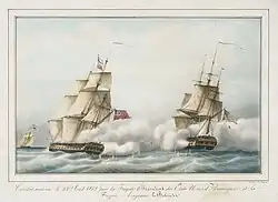 - ↑ U.S. Navy miała w tym okresie w swych szeregach jednostkę ochrzczoną „Spitfire”, jednak brak jasności w źródłach czy wzmiankowany tu „Spitfire” należał do US Navy. Jednostka ta jest określana jako „bryg kupiecki” lub „amerykański bryg”. Artykuł w „DANFS” („Słowniku amerykańskich okrętów wojennych”) nie wspomina nic o tym incydencie, aczkolwiek opisy obu jednostek są bardzo podobne[47].