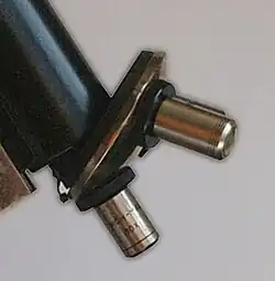 Uchwyt rewolwerowy obiektywów – obiektywy mikroskopu są osadzone w gniazdach obrotowej tarczy - "rewolweru". Jego obracanie umożliwia prostą zmianę obiektywu, a tym samym używanego powiększenia.