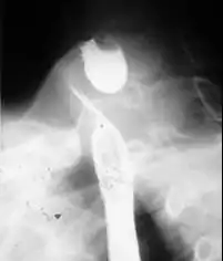 ![]() Radiologiczny obraz uchyłka po połknięciu kontrastu | |