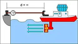 gdzie BP to uciąg, SHP to moc mierzona na wale (w koniach mechanicznych), F to współczynnik wynoszący: 22 dla statków ze stałą śrubą bez dyszy, 24 dla statków ze śrubą nastawną, 26 dla statków ze stałą śrubą w dyszy Korta i 32 dla statków ze śrubą nastawną w dyszy Korta. Wynik w tonach-siły.