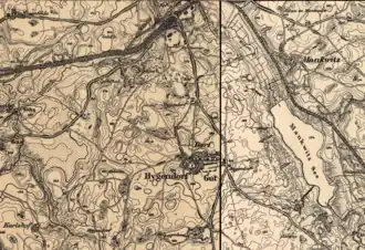 - ↑ Arkusz mapy nr 1870-Bütow z 1941 roku [online], Na południe od Hygendorfer See (jeziora Watra) zabudowania przy drodze opisane jako Chausseehaus, maps.mapywig.org [dostęp 2021-08-29] (niem.).