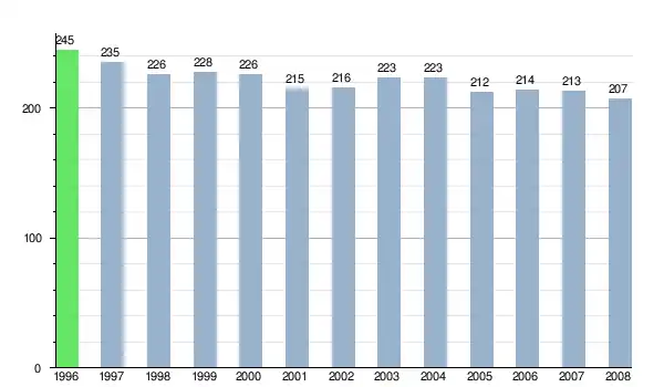 Według danych z dnia 31 grudnia 2012, wieś zamieszkiwały 193 osoby, w tym 90 kobiet i 103 mężczyzn[7].