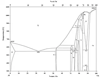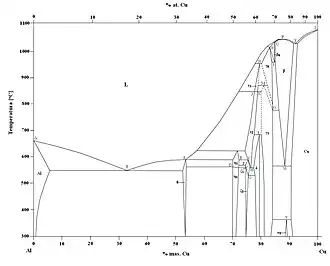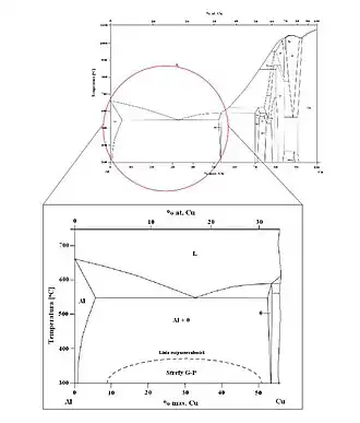- ↑ J.L. Murray, Al-Cu (Aluminium-Copper), [w:] P.R. Subramanian, D.J. Chakrabarti, D.E. Laughlin (red.), Phase Diagrams of Binary Copper Alloys, Materials Park, OH: ASM International, 1994 [dostęp 2018-01-29].