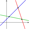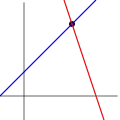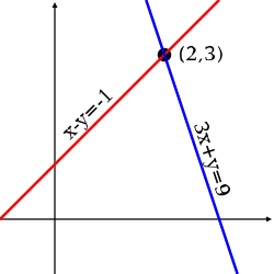 nazywając je układem równań liniowych, zaś zbiór elementów spełniających każde równanie z osobna (odpowiadający punktom wspólnym prostych) – jego rozwiązaniami.