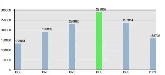 Niniejszy wykres prezentuje liczbę ukraińskich deklaracji narodowościowych w trakcie kolejnych spisów powszechnych przeprowadzanych w Białoruskiej SRR (1959, 1970, 1979, 1989) oraz na Białorusi (1999, 2009)[12]: