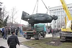- ↑ Sabra Ayres: Ukraine’s plans to discard Soviet symbols are seen as divisive, ill-timed. Los Angeles Times, 2015-05-13. [dostęp 2020-02-21]. (ang.).