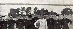 Stroje zawodników na przestrzeni lat. Widać wprowadzenie kolorystyki czerwono-czarnej od 1925 roku